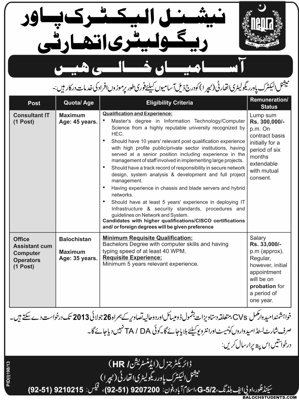 National Electric Power Regularity Authority Jobs Last date: 26th July, 2013 Please read out the above advertisement and you will get all details.